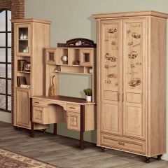 Мебель для детской комнаты «Ралли» – вариант мебели для мальчика, выполненной на базе модулей «Алиса». В основу дизайна модели положена тема гонок и ретро-машин, которыми украшены фасады. Это удачная альтернатива морской темы, так популярной в классической мебели. Кроме того в дизайне угадываются черты стиля Кантри, благодаря использованию древесного декора и патины на фасадах.