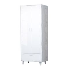 Пенал Эго ПС1, с 2-дв. ( на ножках) Бетон светлый/Белый глянец